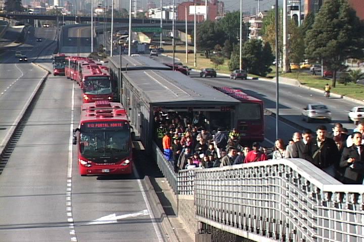 According to Transmilenio’s General Manager, Angelica Castro, roughly 75 percent of passengers use the express services rather than the local services. As shown by the photo below (which was taken at roughly 11 a.m.), it is not uncommon to have multiple local, limited, and express buses serving or passing stations at the same time. Unlike many US rail systems, where the wait between trains can be 10 or 15 minutes or more off-peak, there is almost always a vehicle serving a Transmilenio station. This greatly reduces travel time and enhances passenger convenience.