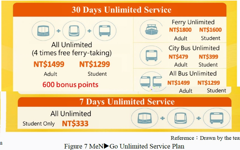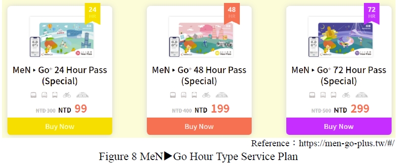 MeN Go has integrated multiple means of transport (MRT, city buses, highway buses, LRT, YouBike, ferries, taxis, GoShare, and parking lots) to let users get passes that meet their needs at discounted prices via their mobile phone APP (or via counter purchase) and with one electronic ticket, thereby conveniently completing travel actions.