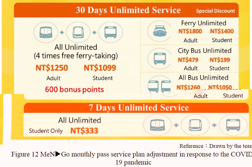 In the recent two years, the COVID-19 pandemic has caused public transportation usage to drop. The Kaohsiung City Government has launched the “Crash Landing on You” passes at lower prices (see the diagram below for the discounted pass prices) and other discount plus activities to encourage public transportation use. With the good MeN Go services and the preferential measures of government sectors, the MeN Go members maintained certain usage despite the impacts of COVID-19. It was especially so during the discount plus stage when the usage even exceeded the usage without the effects of COVID-19.