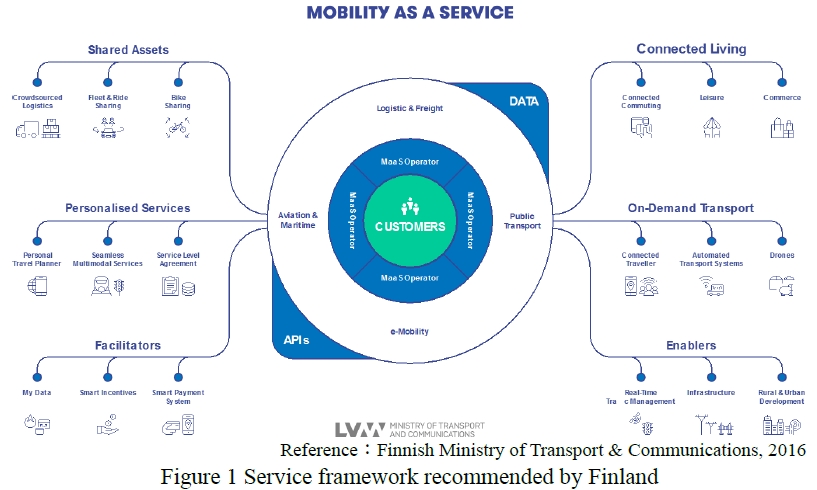 The rapid development of ICT in recent years and the prevalence of the concept of sharing economy have given rise to many innovative transportation service business models. Therefore, Helsinki, Finland proposed the MaaS concept in 2014, integrating multi-modes into single MaaS. Through ICT, cloud technology, and personalized mobile device applications, MaaS can be provided targeting the different mobility needs of users.