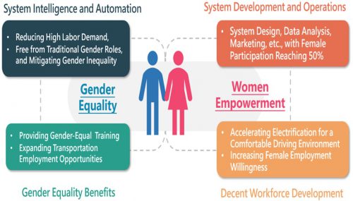 Firstly, women account for 50% of the participation in the development and operation of this system, engaging in different levels of operational and managerial work, including system design, data analysis, and marketing promotion, thereby cultivating their professional capabilities in the field of technology. Secondly, in the use and management of electric bus systems, this project helps accelerate public transportation electrification, making the driving environment more comfortable and reducing noise and stress in the workplace, thereby increasing the willingness and attractiveness of women and aging workers to employment in public transportation.