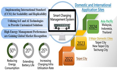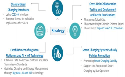 Chinese Taipei is actively promoting the Electrification Plan for Buses by 2030. During this process, we have identified various difficulties and challenges faced by local governments and bus operators, such as land acquisition for parking, installation of charging stations, high-power electricity application, and battery efficiency issues, etc. To address these pain points, this project has developed and implemented strategies in four major areas: “Standardized Charging Interfaces,” “Establishment of Big Data Platforms and AIoT Technology,” “Cross-Unit Collaboration Testing and Deployment at Electric Bus Stations,” and ” Smart Charging System Subsidy Policies Promotion.” These initiatives aim to assist fleet operators in optimizing electric bus energy management, smart charging, and operational management, thus accelerating the promotion of bus electrification by 2030.
