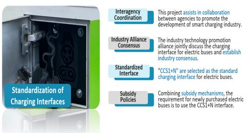 Firstly, we established a cross-departmental coordination mechanism and collaborated with the Industrial Bureau and the Bureau of Standards of the Ministry of Economic Affairs, as well as the charging industry alliance , to promote the standardization of charging interfaces (CCS1+N). This facilitates the application and promotion of this project in Chinese Taipei.