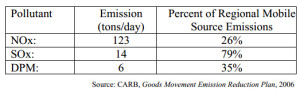 To address these pollution concerns, the Bay Area Air Quality Management District assesses emissions and estimates the portion that are associated with the Bay Area ports. Their findings are shown in the table below. According to their estimates, most of the Sulfur Oxide emissions in the region are a result of port activity.