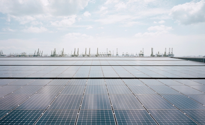 SDE4 upholds key tenets of tropical design in its climate-responsive architectural form and spatial layout optimized for natural ventilation interspersed with thermal buffers/social spaces and landscaped balconies. A large overhanging roof hosts more than 1200 photovoltaic (PV) panels to harness solar energy to meet the energy demands of the building.