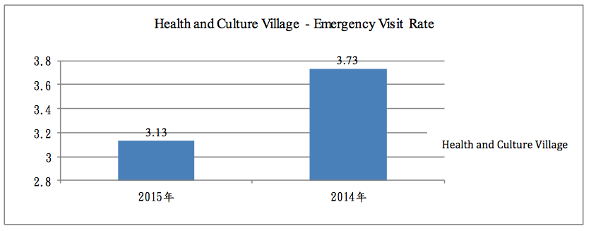 It is known from the diagram above that the emergency visit rate was 3.13% in 2015 and 3.73% in 2014. The number had significant drop and was far behind the emergency visit rate 4.11% of elders aged over 60 in Taiwan.