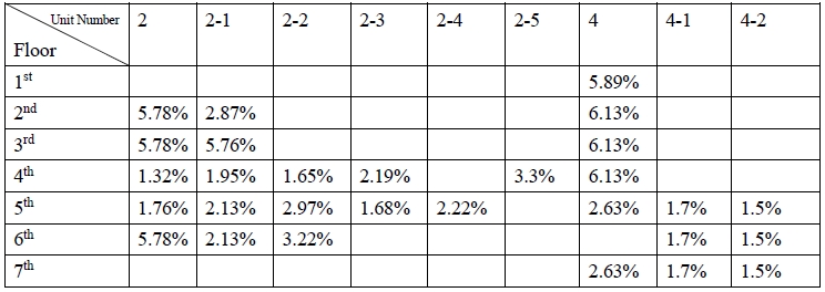 Floor \ Unit Number | 2 | 2-1 | 2-2 | 2-3 | 2-4 | 2-5 | 4 | 4-1 | 4-2 |