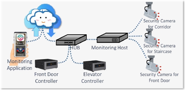 Originally, considered to signal stability, YF decided to choose a wired video door phone system. However, the wired system needs to install 29 indoor units for each household which do not include in the initiative. After the close assessment, including wire-speed, cost, hygiene and material dosage, the residents chose the cloud wireless system as the alternative. When visitors call from the video door phone, residents’ cell phones will receive a notice to confirm visitors’ identification and send them to the specific floor only, as shown in Figure 2.