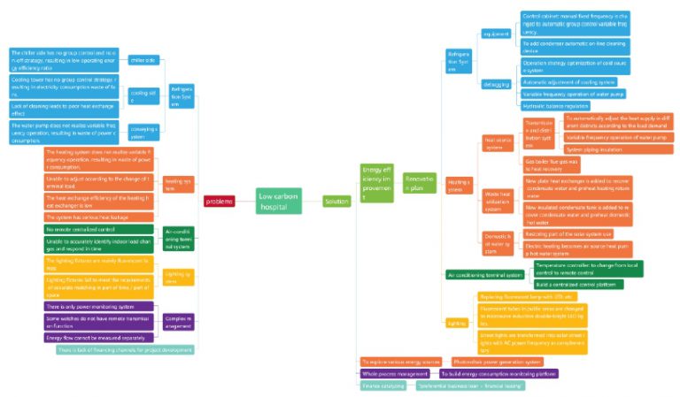 According to the field research on energy consumption characteristics of the hospital, the needs of different scenarios, the pain points of users and the problems existing in the energy consumption system, the energy-saving renovation plan is formulated according to local conditions, as shown in the figure below:
