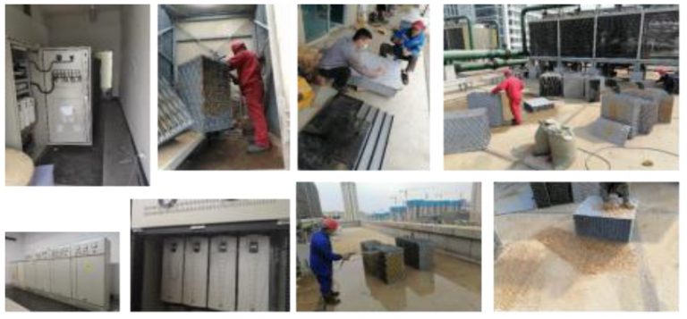 Figure 21 Cleaning of cooling tower filler and installation of frequency converter.