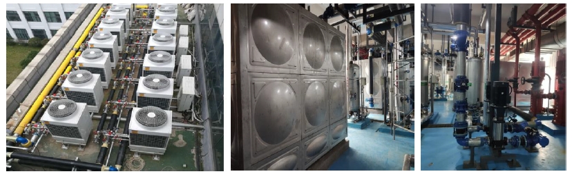 In the domestic hot water system, the municipal steam was originally used as the heat source, and the domestic hot water was provided through the steam-water heat exchanger. The price of steam heat source is high, and due to the long-time use of steam-water heat exchanger, the heat exchange efficiency decreases. The temperature of the condensed water is high and finally discharged directly. All these make the cost of producing domestic hot water high.