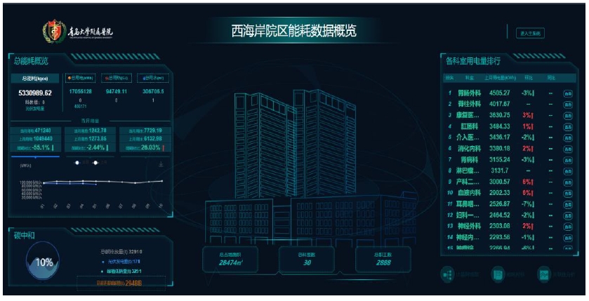 The project provides data support for hospitals to strengthen internal management, improve energy management systems, strengthen energy conservation measures, and establish long-term mechanisms. It effectively enhances employees’ awareness of energy conservation and emission reduction, and reduces the hospitals’ energy consumption level. The project uses big data digital technology to build a smart logistics management platform to monitor the multi-dimensional energy consumption. Building energy consumption data in the platform can trace not only the equipment dimension and regional location dimension, but also the user dimension, which is the basic data of energy consumption. The user dimension is the unit and the department, and the energy assessment work is detailed to each department. So it is convenient for department’s energy assessment at the end of every month to reflect on and optimize the energy-saving work strategy. The monthly data is automatically ranked and announced on the homepage of the platform. And corresponding reward and punishment measures will be taken for each department, according to Administration Measures for Energy Assessment of the Affiliated Hospital of Qingdao University. This improves the energy-saving awareness of hospital doctors.