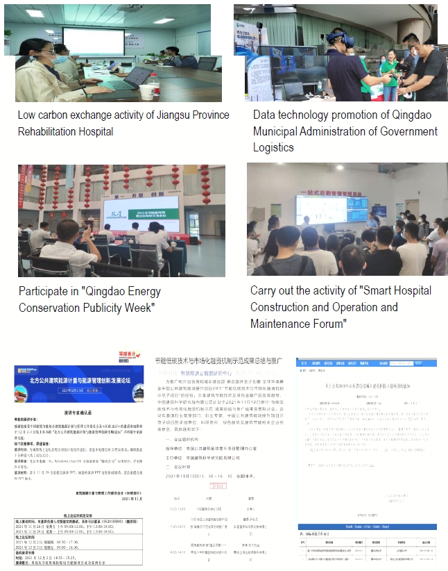 Due to the outstanding “carbon reduction” effect of this project, the project team was invited to attend a series of activities, such as, the exchange activity on the construction of “low carbon” hospital of Jiangsu Province Rehabilitation Hospital and the Seminar On Green and Low-Carbon Circulation Technology and Management Model Innovation of Public Institutions in Shandong, which was jointly organized by ESCO Committee of China Energy Conservation Association (EMCA), Shandong Provincial Administration of Government Logistics and Qingdao Municipal Development and Reform Commission. Besides, As the demonstration achievement of energy-saving and low-carbon technology and market-oriented financing mechanism, the project team participated in the summary and promotion activities organized by China Academy of Building Research. Meanwhile, the intelligent logistics management software platform of the Affiliated Hospital of Qingdao University, through the panoramic VR technology, held VR live experience activities to many enterprises and institutions, including Qingdao Municipal Administration of Government Affairs , China Energy Conservation Association, China Academy of Building Research, Qingdao Energy Group and so on, achieving the replication and promotion of the data platform. It has led four district hospitals of the Affiliated Hospital of Qingdao University, Qingdao Municipal Hospital (East District) and several Grade III Level A hospitals in the province to start energy efficiency improvement. And it drives Jiangsu Province Rehabilitation Hospital to carry out the construction of “low carbon” hospital. On December 2-3, 2021, the project team was invited to participate in the “Innovation and Development Forum of Energy Measurement and Energy Management of Northern Public Buildings” (live online), and gave a keynote speech on “sharing of successful case of comprehensive energy project of the Affiliated Hospital of Qingdao University”. On August 26, 2021, it was invited to participate in the “Qingdao Energy Conservation Publicity Week”, gave a keynote speech on “analysis of comprehensive service platform for energy conservation” and conducted on-site communication. From July 16 to 18, 2021, it participated in the “Smart Hospital Construction and Operation and Maintenance Forum” hosted by the Affiliated Hospital of Qingdao University, and introduced the contents related to the energy-saving renovation of the project. Moreover, being listed as the science and technology plan project of Shandong Province, it was successfully concluded.