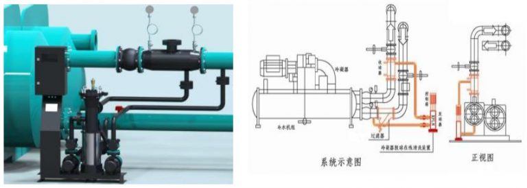 A chiller rubber ball cleaning device is added to the chiller.The automatic on-line cleaning device of chiller rubber ball is a solution for the scaling of the inner tube-wall of the condenser, which affects the heat exchange effect and reduces the entire efficiency of the whole unit. It can automatically clean the inner wall without disassembling the unit, reduce labor and effectively protect the use effect and service life of the condenser. Figure 20 Schematic diagram of the rubber ball cleaning device.