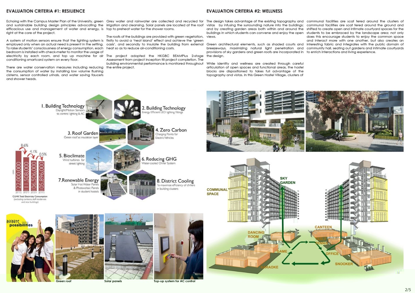 As an elaboration of the core values of CUHK’s Green Campus Master Plan and sustainability targets of —25% per capita energy saving from 2005-25 and -8% saving per capita from 2012-17; the planning and construction of the University’s student hostel system have adopted green building and biophilic design approaches to develop innovative Eco-Habitats for student living and experiential learning.